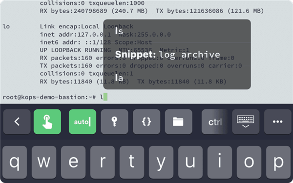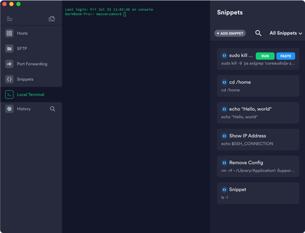 3、将您经常使用的shell脚本保存为代码片段。在多个目标上运行它们或立即在终端中自动完成它们。