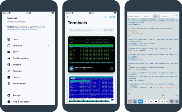 3、SSH,Mosh和Telnet协议支持,带有bash的本地终端。
