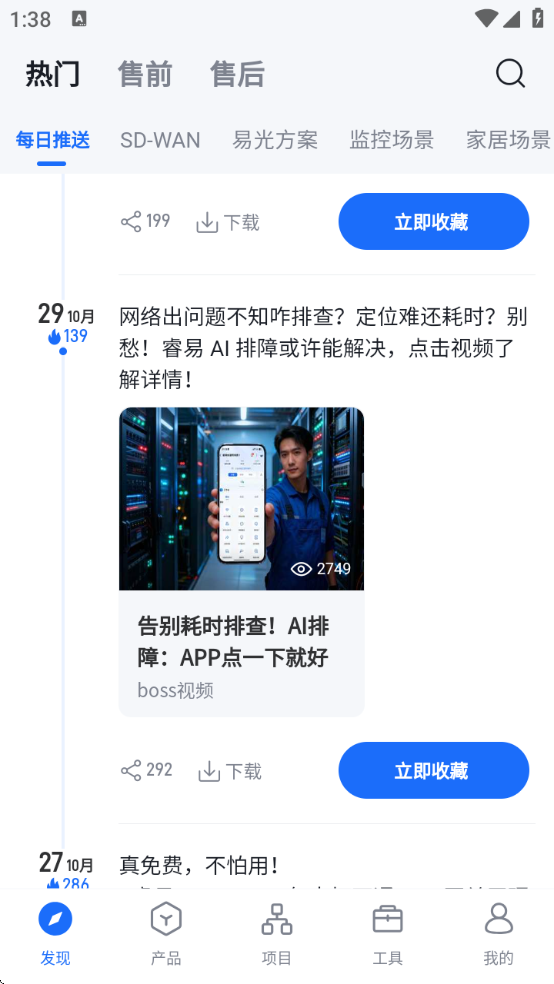 锐捷睿易软件下载软件支持手机上查看详细的网络状态,帮助用户们轻松解决各种无线网络的问题,遇到问题它会给用户们提供一个令大家满意的方案,还可以帮助大家远程语音网络。睿易app还支持测试网速,大家可以使用软件轻松快捷的对无线网进行设置和管理,同时软件还可以在手机上购买锐捷旗下的其他产品,大家可以通过软件学习无线网、路由器等相关的视频知识,喜欢的朋友快来下载吧!