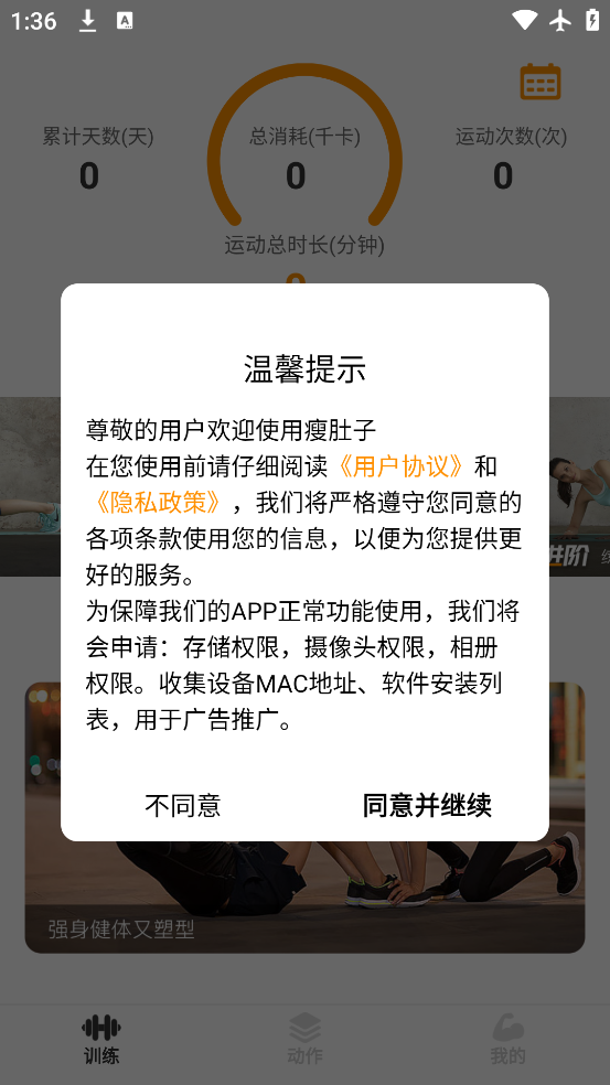 1、直接打开瘦肚子app,立即进入训练页面查看使用