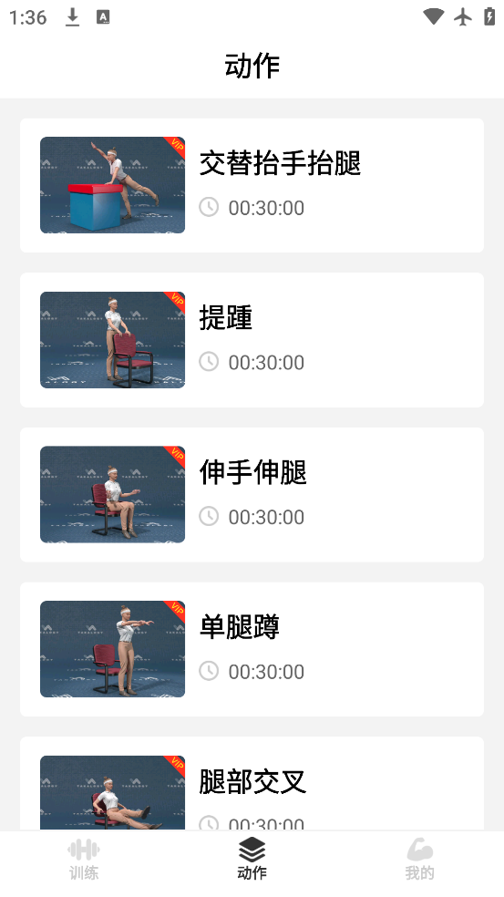 3、点击动作,立即浏览所有的动作,依次点击观看动作