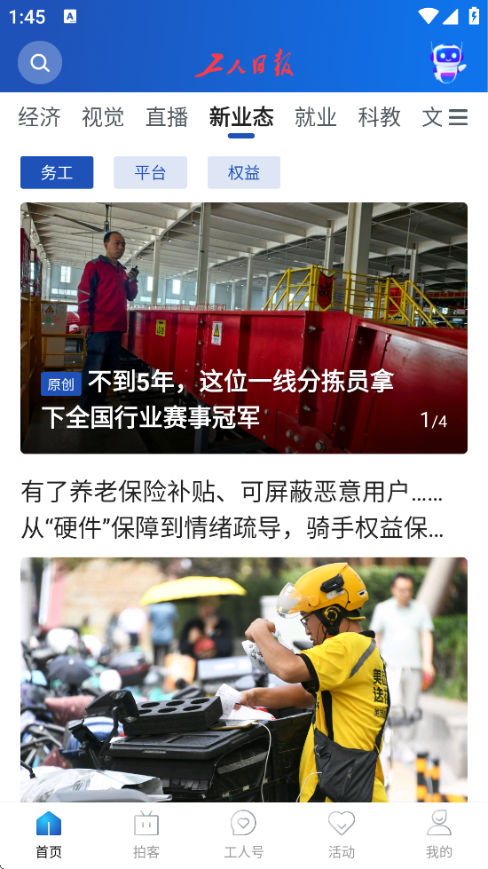 工人日报客户端是一款权威的新闻资讯类应用,以发布时政新闻、工会动态、社会热点等内容为主,同时整合视频、直播、电子报等多媒体形式,并引入智能助手“小工同学”提供个性化推荐。其特色在于服务职工群体,提供权益保障、便民服务(如预约挂号、法律咨询)及互动社区功能,支持用户通过“工人号”订阅特定内容。客户端界面设计清新,注重职工参与,强调内容贴近性和实用性。