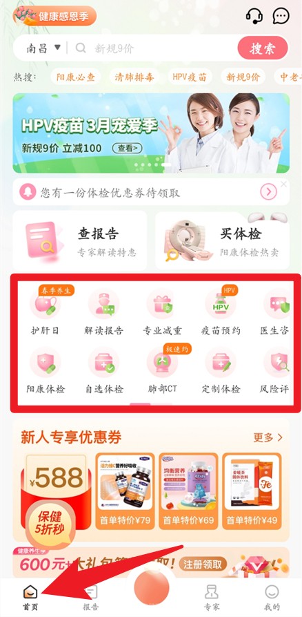 4、折扣专区:提供大额抵扣券、节日折扣及家庭优惠(如父母体检拍一免一)。