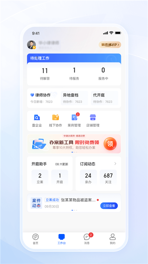 2、集成多种法律工具(如文书生成、类案检索等),辅助律师高效完成日常工作。