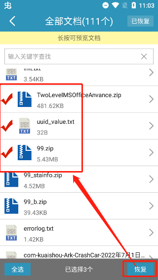 2、选择你要恢复的图片,点击右下角恢复即可完成。