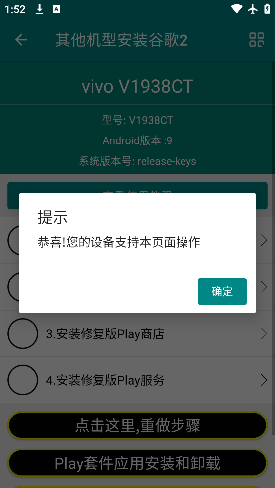 3、华为谷歌安装器最新版能自动判断该手机的硬件型号是否具备安装条件。