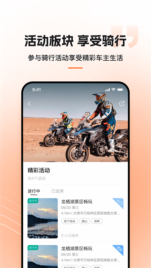 1、车友社区互动:用户可分享骑行路线、参与官方活动,与其他车友交流动态和话题。