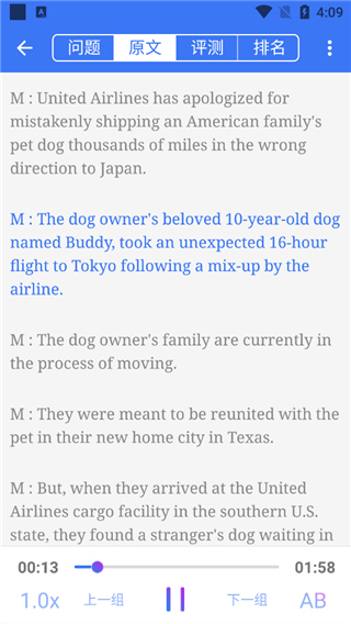 3、可以逐字逐句精听音频,能够在了解文意的基础上练听力。