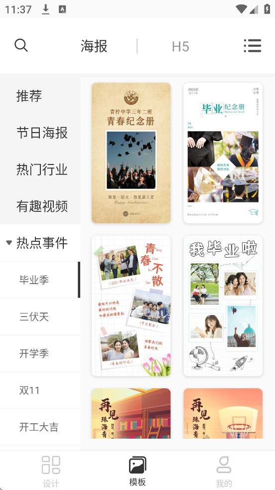 2、多场景覆盖:模板涵盖手机海报、公众号封面、电商主图、邀请函等热门分类,满足线上线下营销需求。