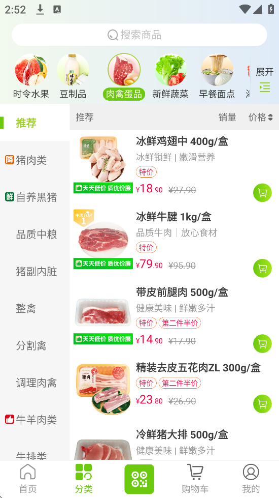 2、全品类商品覆盖:提供新鲜蔬果、河鲜海鲜、肉蛋禽、米面粮油、日用品等全品类生活必需品。