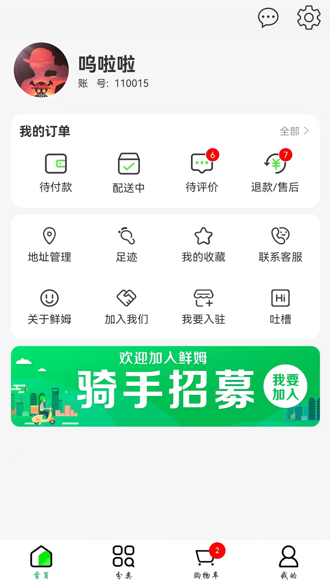 加入购物车后,可调整数量或继续选购,最终结算时选择配送地址。