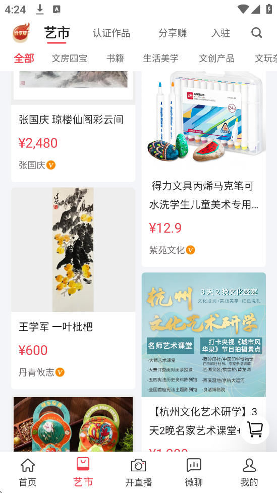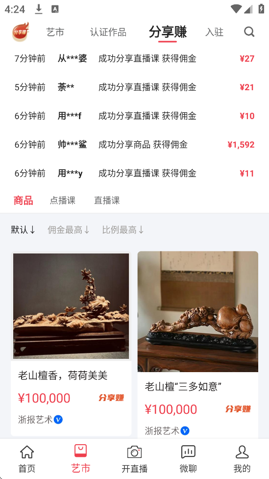 2、包含短视频带货功能、“分享赚”奖励机制及产权登记服务,实现艺术品保真直销。