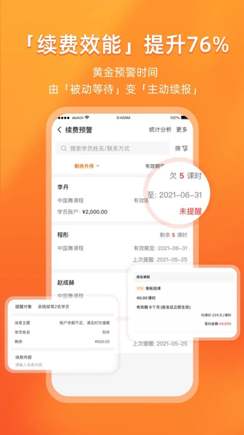 2、多维度数据分析:提供销售、教务、财务等数据统计,辅助机构决策。