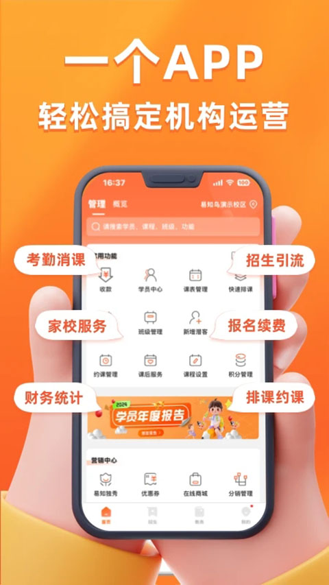分销管理:学员家长可成为分销员,通过熟人社交推广课程,实现精准引流。