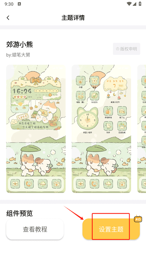 2、点击设置主题按键。