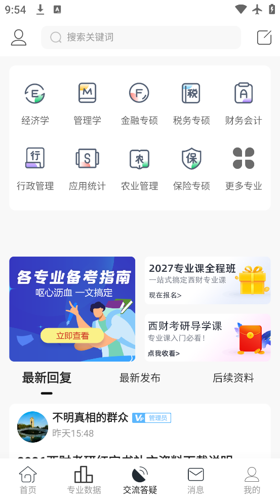 西财考研app官方版下载是一款简单好用的软件,能够帮助用户快速的寻找各种学习资料,体验不同的考研方案,针对性的了解历年题库,还有预测题型可以及时完成。本站提供了西财考研app官方版下载资源,感兴趣的话快来下载吧!