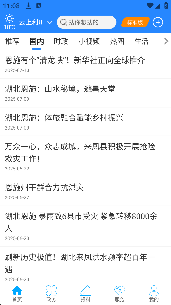 1、新闻服务:汇聚热闻头条,覆盖全国、湖北及利川本地新闻,支持直播点播、多分类阅读(如时政、头条)。