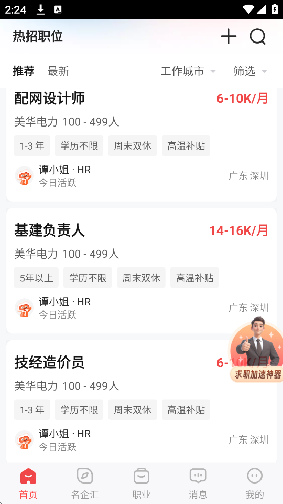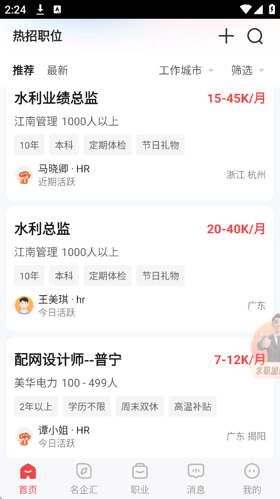 2、智能职位推荐:依托大数据算法,精准推送符合用户技能和职业规划的高薪职位。