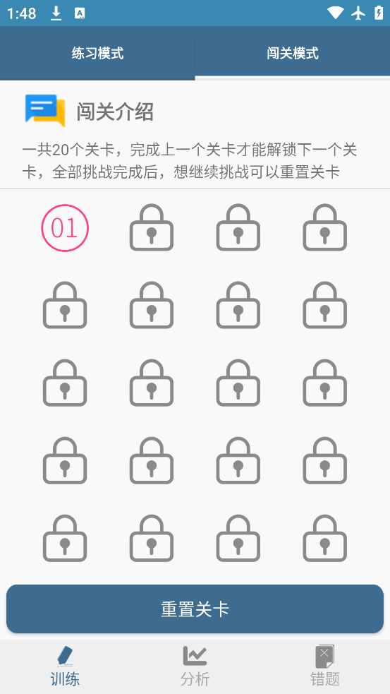 3、还可以对关卡进行重置,用户就能重新开启新的闯关模式了。