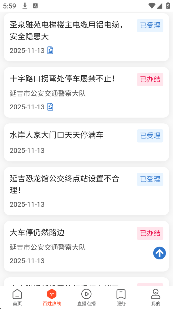 提供便民诉求受理入口,可查询或反馈城管、环境等问题。