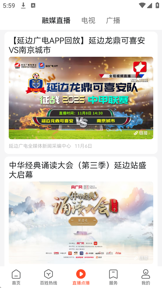 直播:支持延边广播电视台旗下电视频道及电台频率的实时观看。