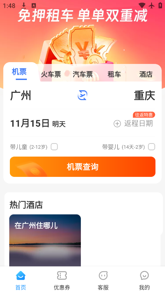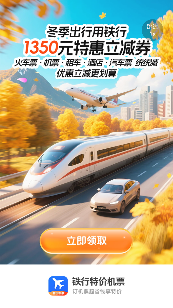1、国内机票,铁行飞机票app底价优惠袭来,往返立减20。