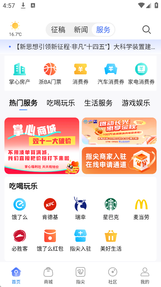 4、界面优化:首页分设“新闻”与“服务”模块,分类清晰,操作流畅。