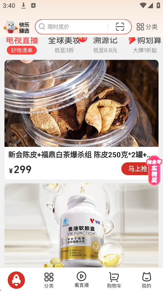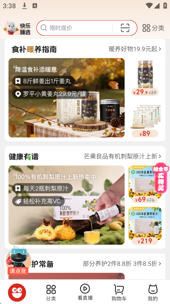 2、功能导航:一键直达商品、优惠、客服等核心功能。