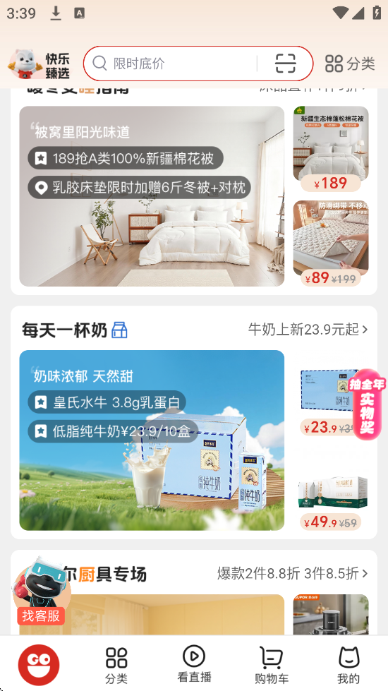 快乐购商城软件是湖南广电芒果超媒旗下的官方购物平台,提供涵盖餐厨、家纺、家电、美妆等八大品类的正品商品,支持货到付款和微信支付,并享有10天免费退换服务。用户可通过APP、微信服务号等渠道享受娱乐化购物体验,平台还整合了淘宝、京东等电商的优惠券,实现一站式比价购物。其智能客服“狗小二”提供物流查询、订单管理等便捷服务,部分区域支持全国配送。