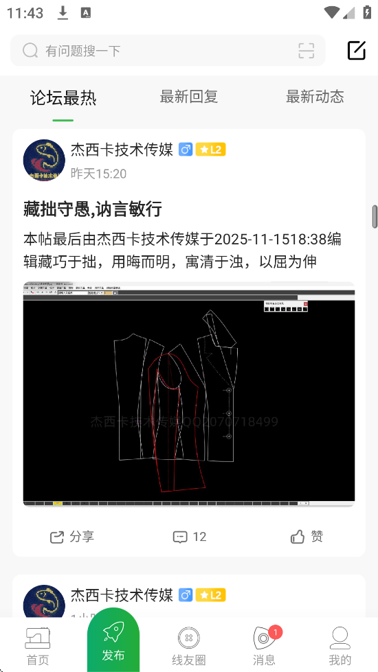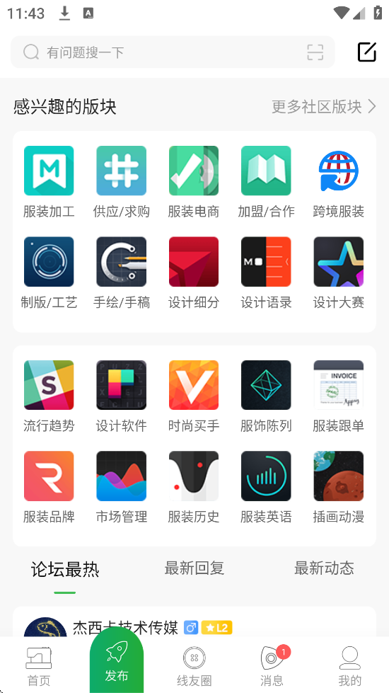 2、互动交流社区:提供“服装圈”和论坛板块,用户可以发布动态、图片、视频,参与话题讨论,与同行设计师沟通交流,打造服装人的互动社交圈。