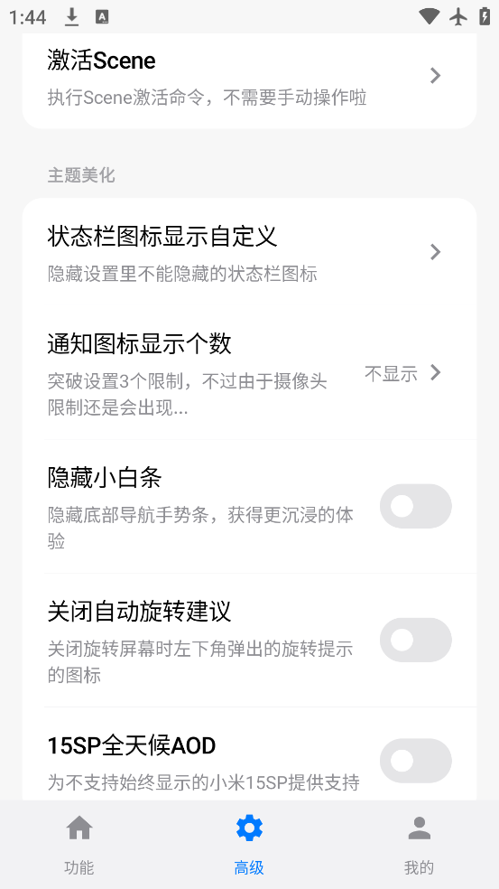 2、高级功能通过Shizuku框架实现,确保了功能的稳定性和兼容性,同时提升了系统调用的效率。