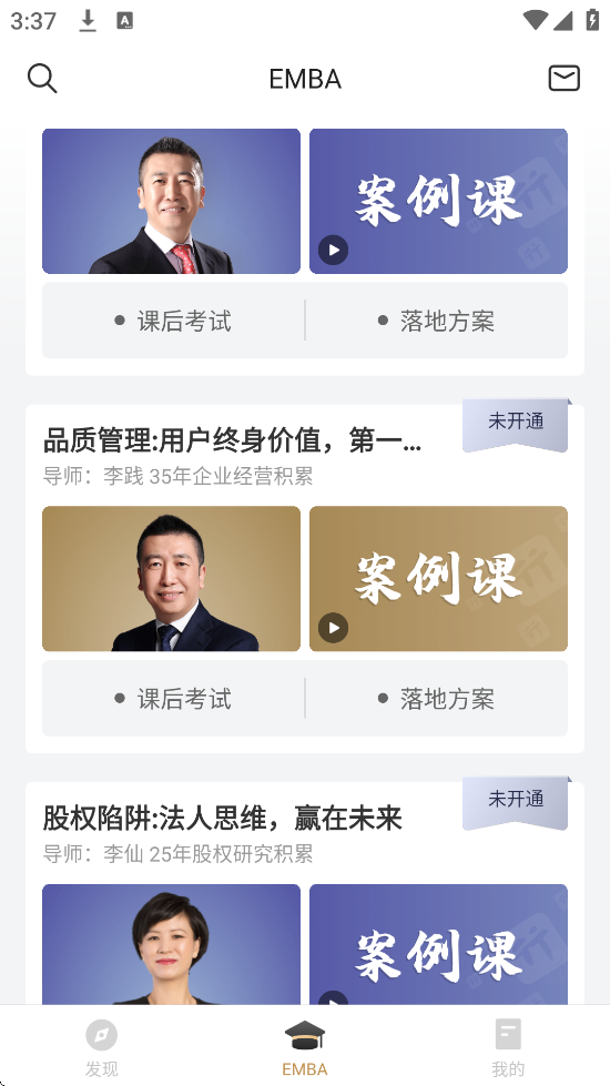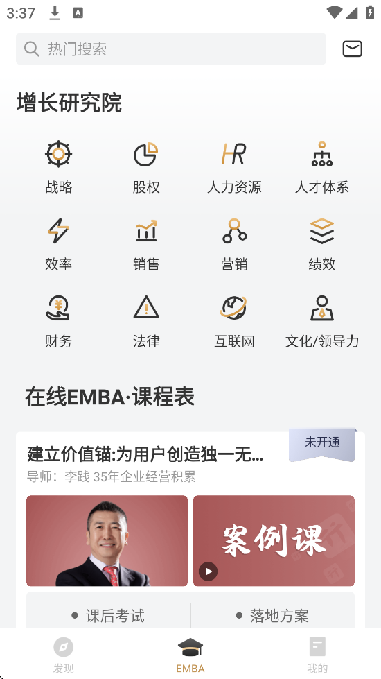 1、EMBA课程学习:提供涵盖战略、人才、资本、市场营销等八大企业管理能力的在线EMBA课程,支持音频、视频等多种形式。