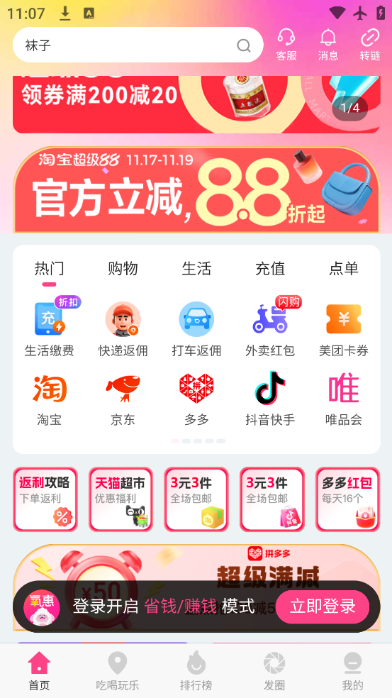 3、刚需高频复购,吃喝玩乐,衣食住行,是我们必须要消费的。氧惠APP上聚合了市面上主流的消费购物平台;