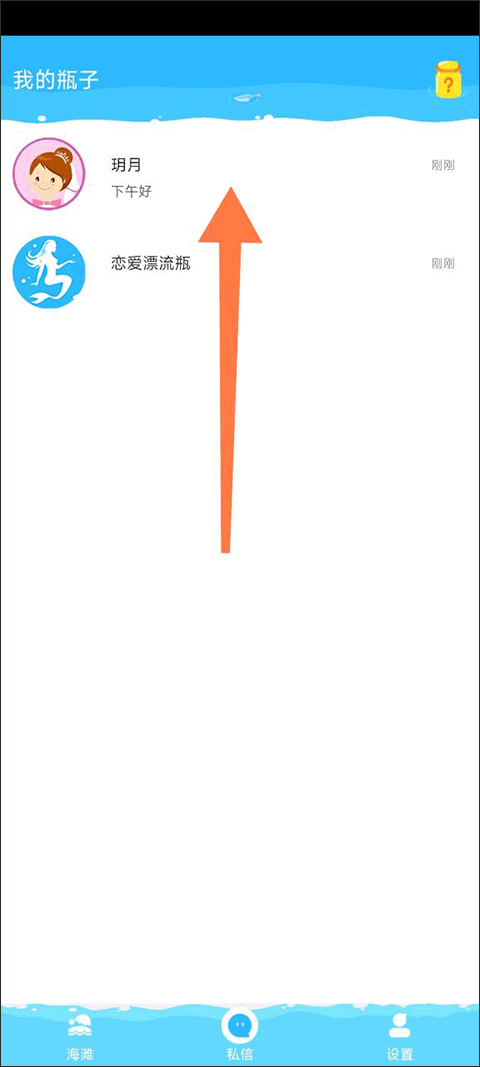 1、首先我们打开恋爱漂流瓶app,然后点击右下角的图标进入私聊界面。