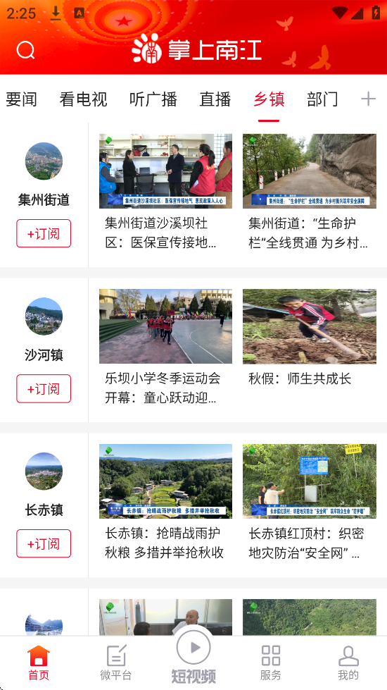 直播与回看:点击“直播”模块,可观看南江电视台节目直播或回放,如红叶节、彩林节等特色活动。