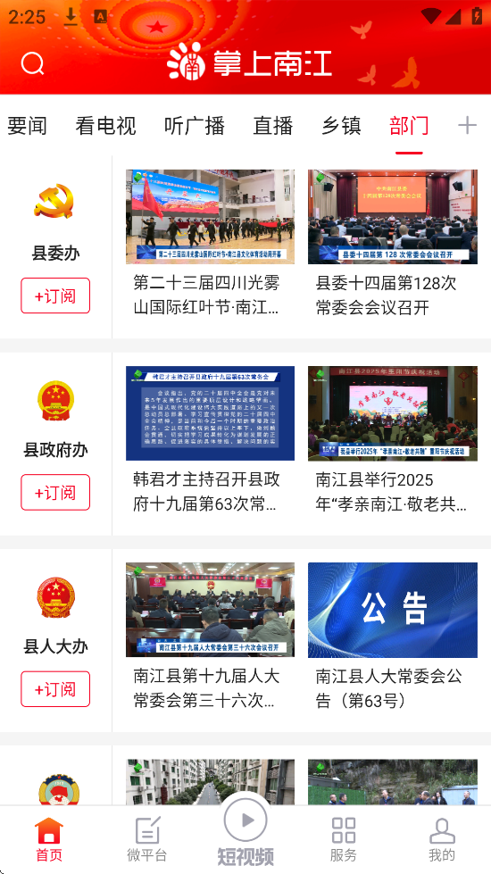 1、新闻资讯:提供南江本地新闻、部门动态、民生聚焦等12个资讯栏目,支持图文、视频、广播等多种形式阅读。