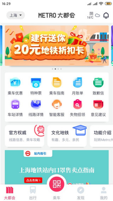 1、在本站下载并安装上海地铁大都会app官方版,进入软件首页,可以查看各项功能