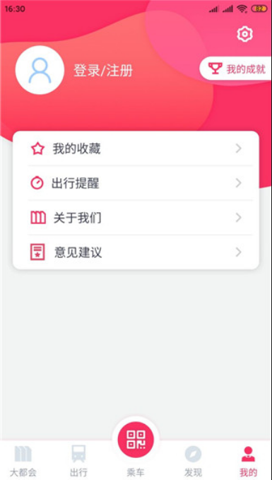 5、点击我的,可以登录app,查看收藏,出行提醒