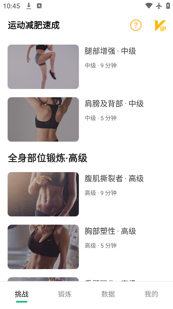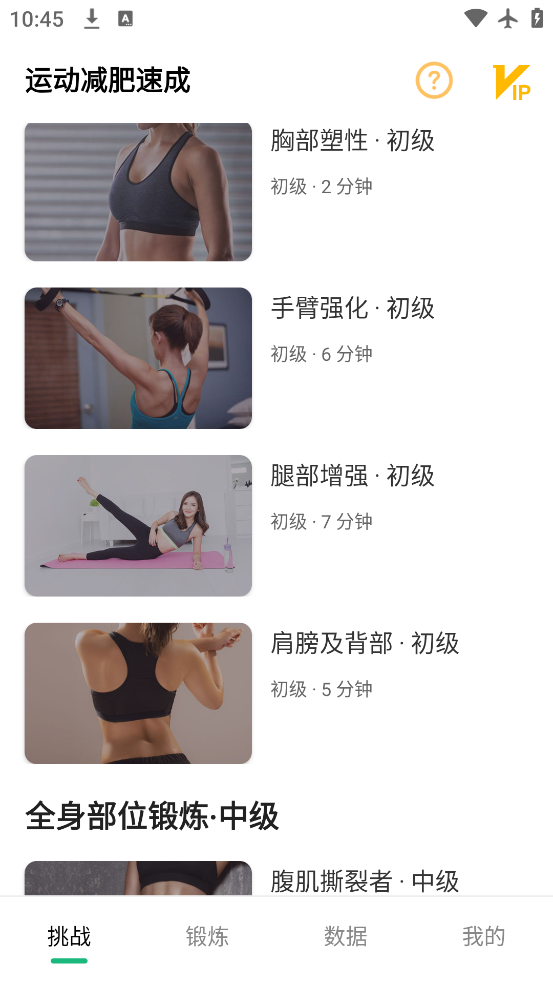 2、将海量的运动健身课程划分为初级,中级以及进阶难度。