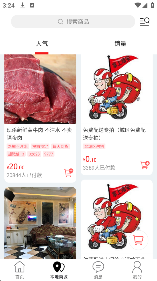 电商购物:通过“本地好物”频道浏览商品,支持在线支付。