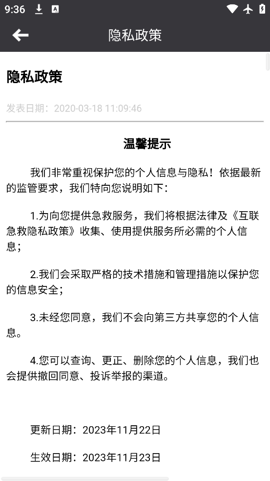 3、急救手册,方便您随时查阅学习急救知识;求助功能,方便浏览地图,了解自己所处的具体位置,在紧急情况下,可以快速向亲友发出求助信号;公告功能,每天向您提供急救、保健类知识。