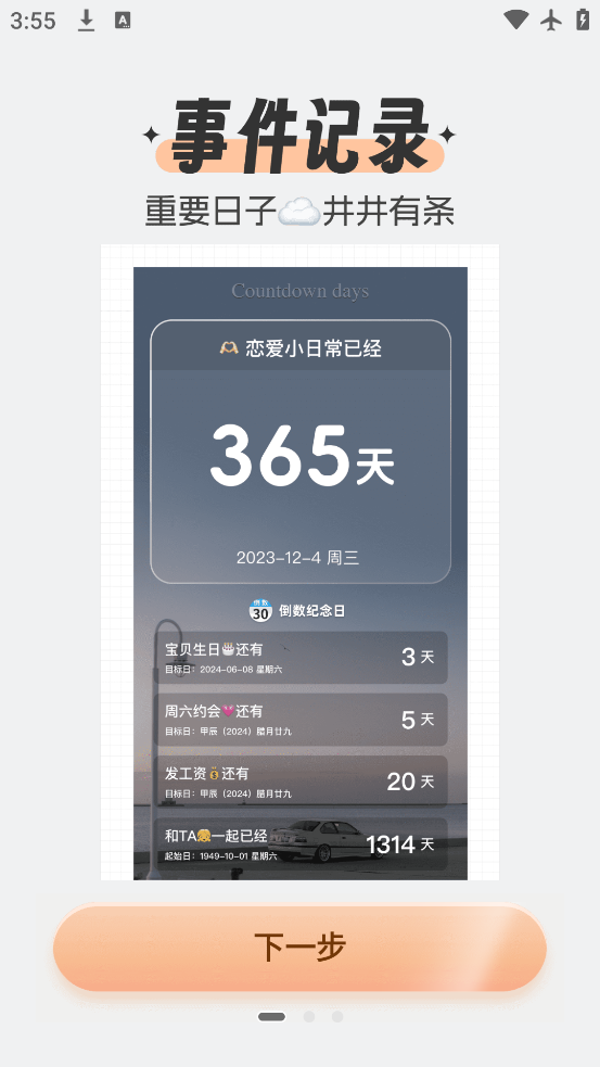 4、随时都可帮助用户更好地时刻掌握重要事件的倒计时情况,提高用户生活的效率和便利性。
