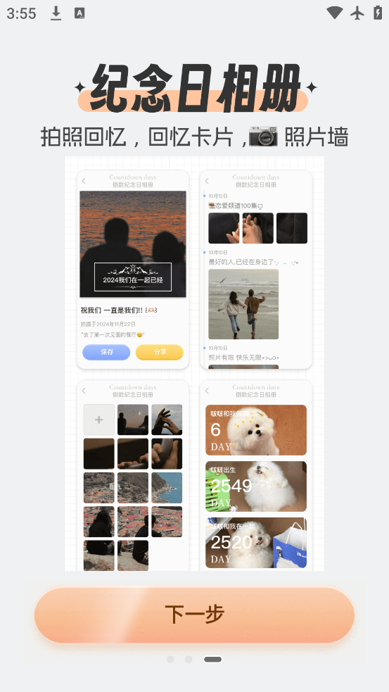 1、记录节日,生日、恋爱日、纪念日、高考倒计时、重要日程等。