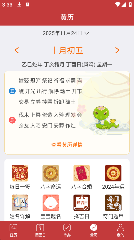 1、基础服务:提供万年历、节假日查询、吉日查询(如婚姻/搬迁/出行)、每日一卦、罗盘方位、大屏时间展示、数字转换(大写金额)、退休年龄计算器等。