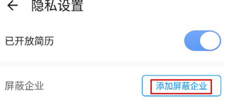 2、点击“添加屏蔽企业”搜索并选择要屏蔽的公司。