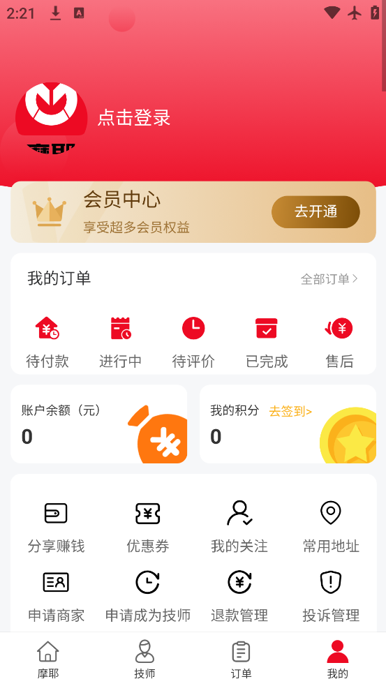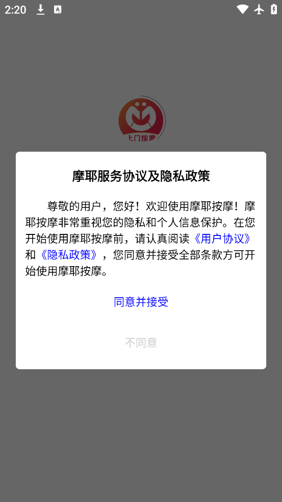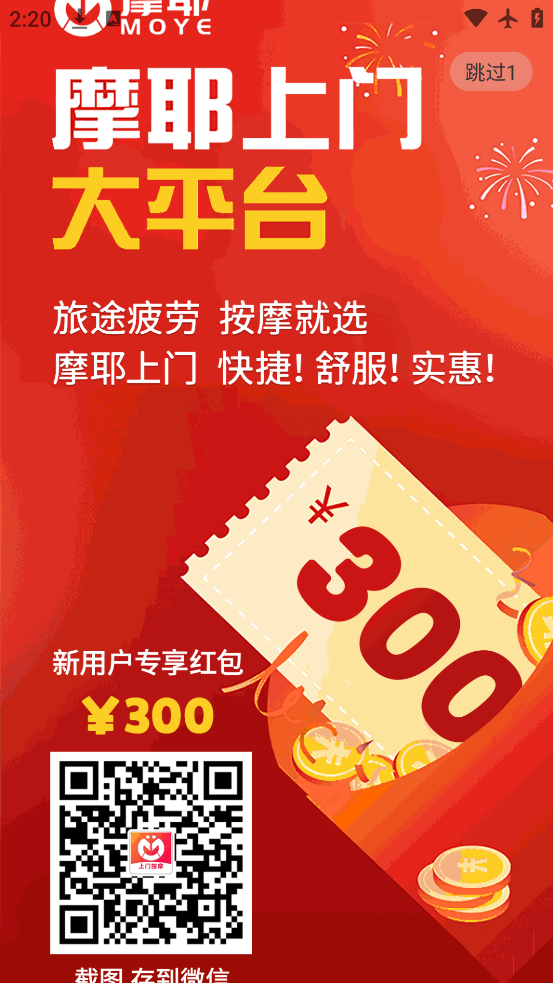 1、第一步:选择桌面【摩耶上门按摩】点击,跳转进入下一个界面。