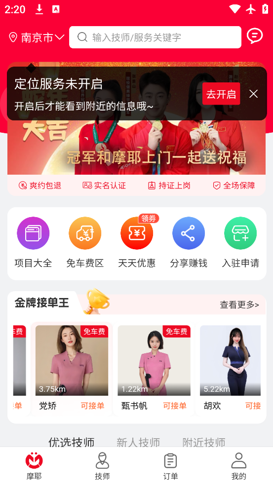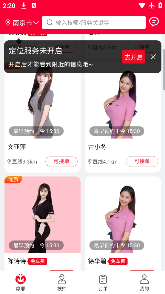 4、软件里面的各样技师都通过实名认证、资质认证,安全可靠,用户可放心下单。