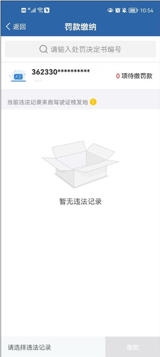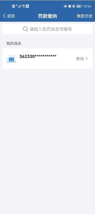 3、用户可以直接输入处罚决定书编号,也可以通过身份证一键查询。