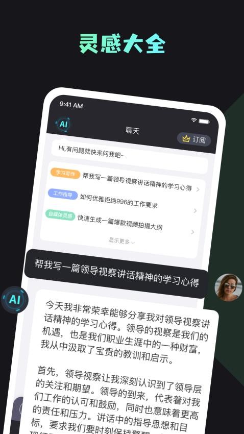1、高效辅助:快速生成创意内容(如文章大纲、标题),提升写作效率。