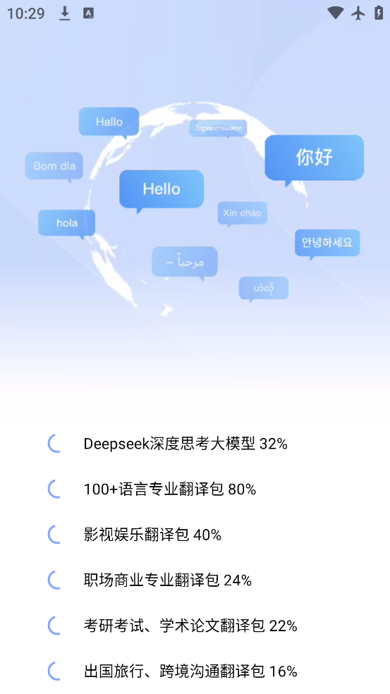 3、语音翻译功能可实现单人使用,以及双人对话的分屏模式实时翻译。